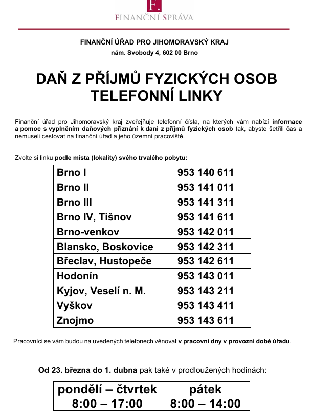 DAŇ Z PŘÍJMŮ FYZICKÝCH OSOB TELEFONNÍ LINKY