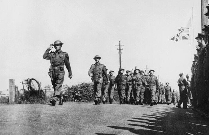 Foto: Josef Otisk v čele své jednotky při slavnostním pochodu, Velká Británie, 1941-1942. Foto archiv Tomáše Jambora, www.encyklopedie.brna.cz