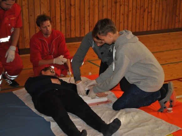 Dne 2. listopadu naši školu navštívila Mezinárodní zdravotnická organizace Červený kříž. První hodinu jsme měli teorii. Ta obsahovala promítání obrázků a informace například o krvácení. Po té jsme se 2 hodiny učili a začala praxe. Přesunuli jsme se do tělocvičny naší školy, kde byla stanoviště. Napřed nás seznámili s tím, co budeme na každém stanovišti dělat. Následovalo rozdělení do skupin ke všem stanovištím a 15 minut na vyzkoušení aktivity.